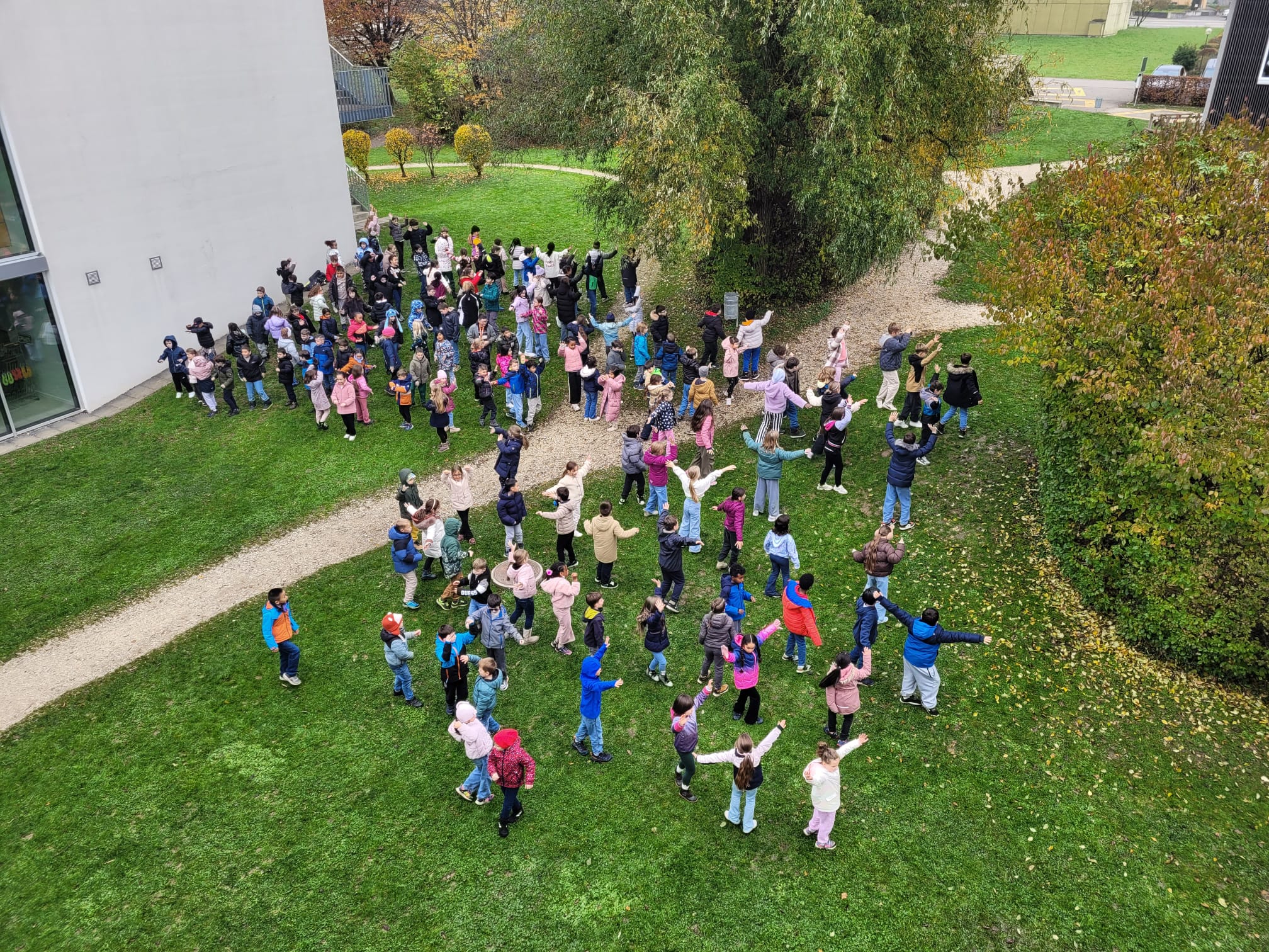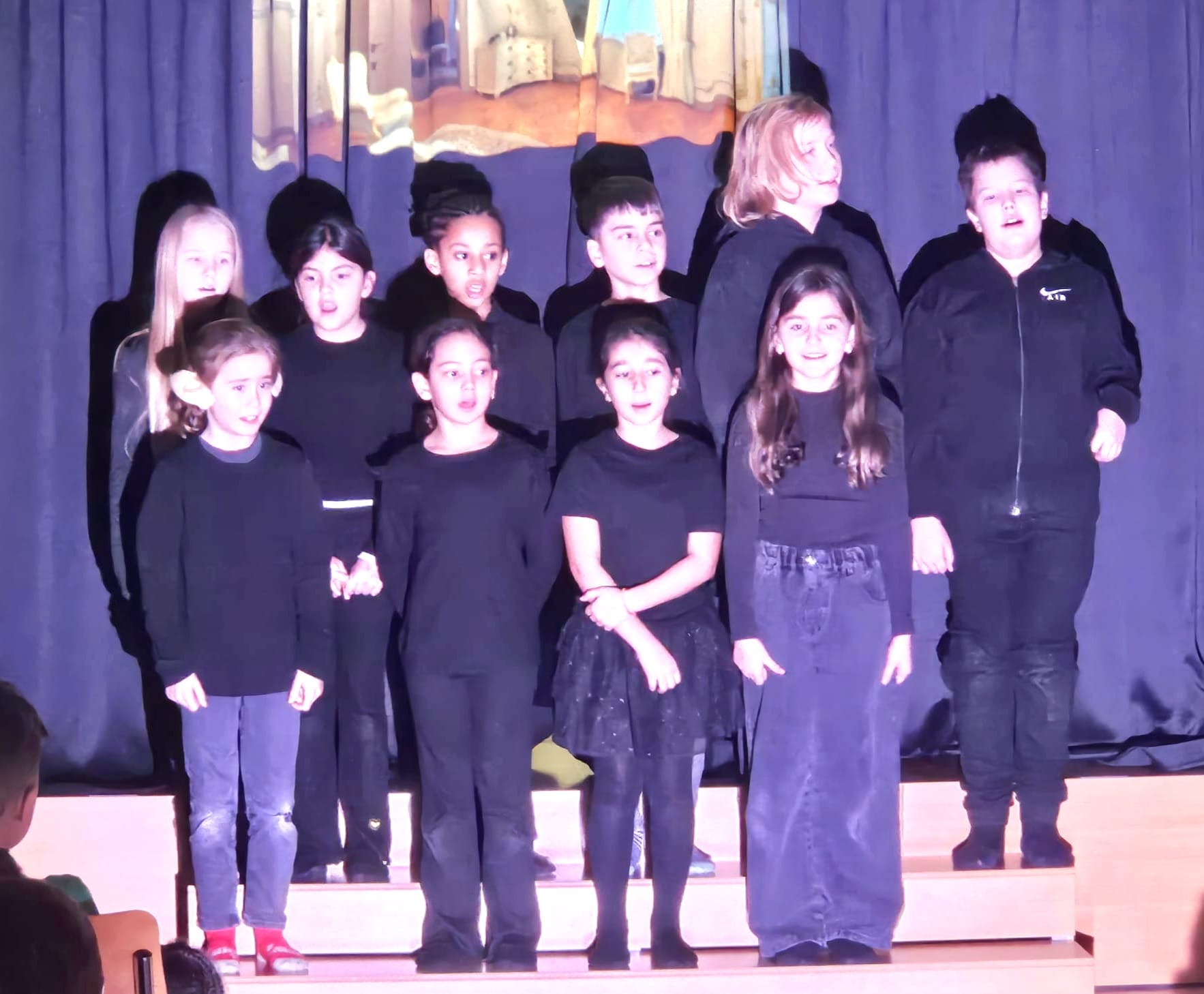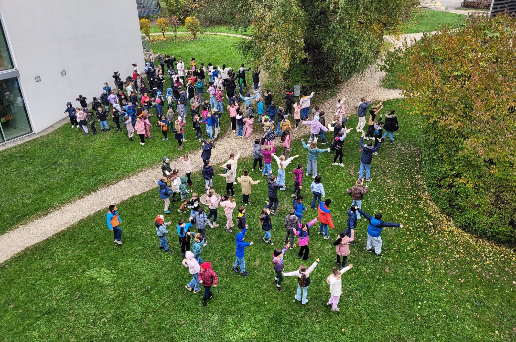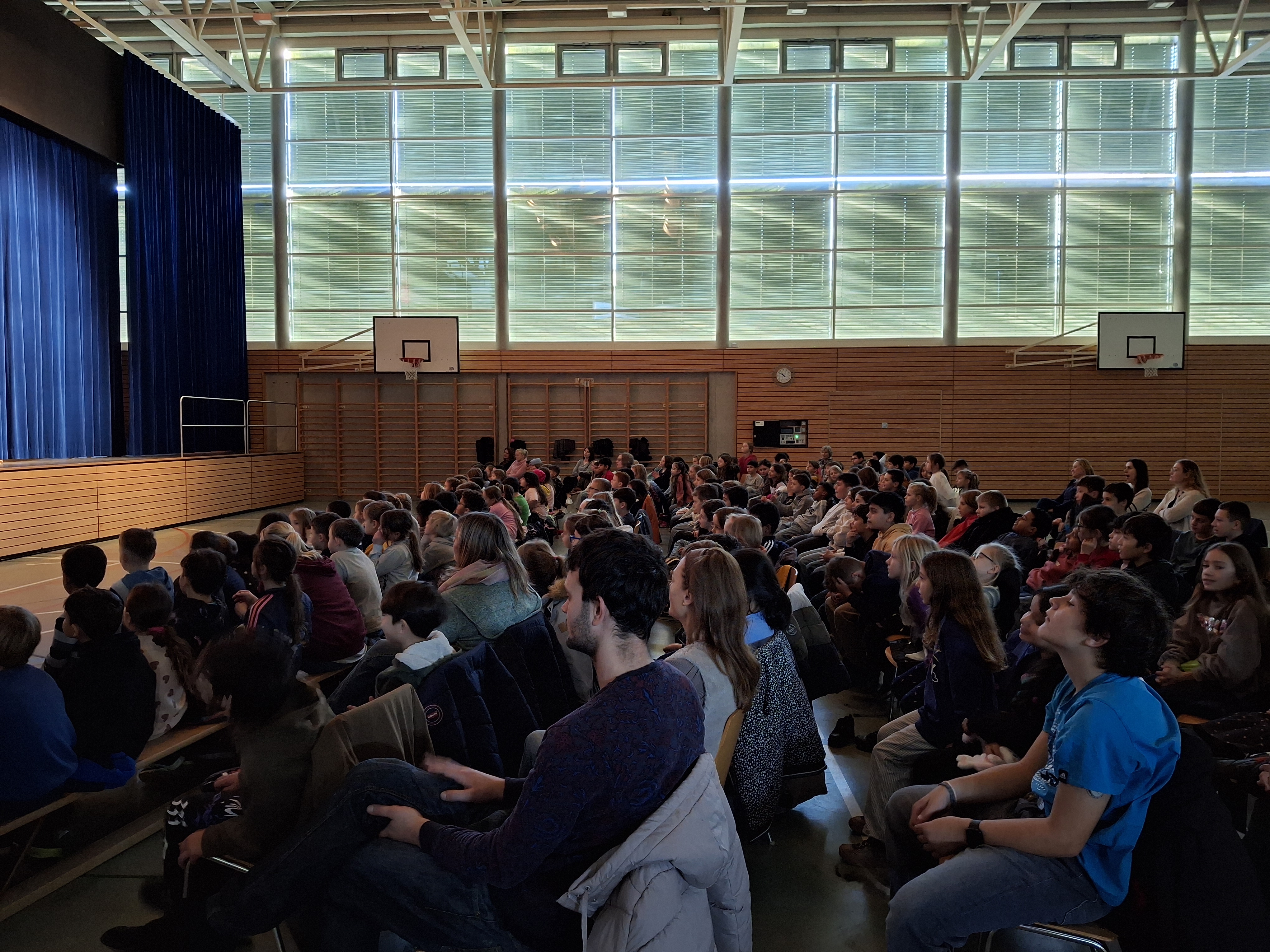 Der Pausenplatz war zu Beginn abgesperrt, und zahlreiche Besucherinnen und Besucher warteten gespannt auf den Einlass. Um 18.30 Uhr war es endlich so weit: Die Kinder eröffneten den Abend mit dem SayHi-Tanz und lockten damit die Eltern und Gäste zum Schulhaus. Anschliessend begrüsste Rebecca Rivoire, Schulleitung Zyklus 1, alle Anwesenden mit einer warmen, herzlichen Rede.