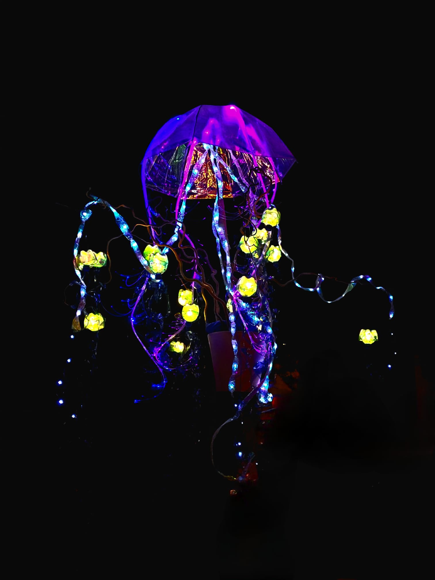 Entsprechend diesem Motto zierten bunt schimmernde Fische in allen Formen und Farben, leuchtende Seerosen, riesige Kraken, eine faszinierende Riesenqualle, lustige Ballon – Quallen, herzige Schildkröten, ein stimmungsvoller Seerosenteich und diverse verteilte Flaschenposten den Pausenplatz und verbreiteten eine märchenhafte Atmosphäre.