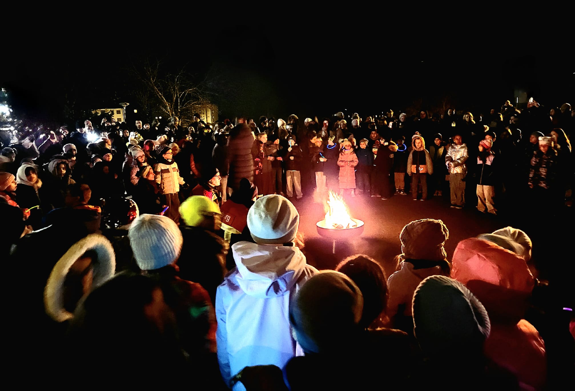 Zum Abschluss versammelten sich alle um die Feuerschale, die von der Feuerwehr entzündet und überwacht wurde. Die Kinder sangen ihre einstudierten Lieder und erfüllten den Platz mit Wärme und Gemeinschaftsgefühl. Auch in diesem Jahr erinnerte Danik Frautschi in seiner berührenden Rede daran, dass man selbst in dunklen Momenten einander begegnen, Licht teilen und Verbundenheit spüren kann – denn das Licht eint uns, auch in der dunkelsten Nacht. Mit dem kraftvollen Schlusslied This little light of mine fand das Lichterfest einen fulminanten Ausklang.