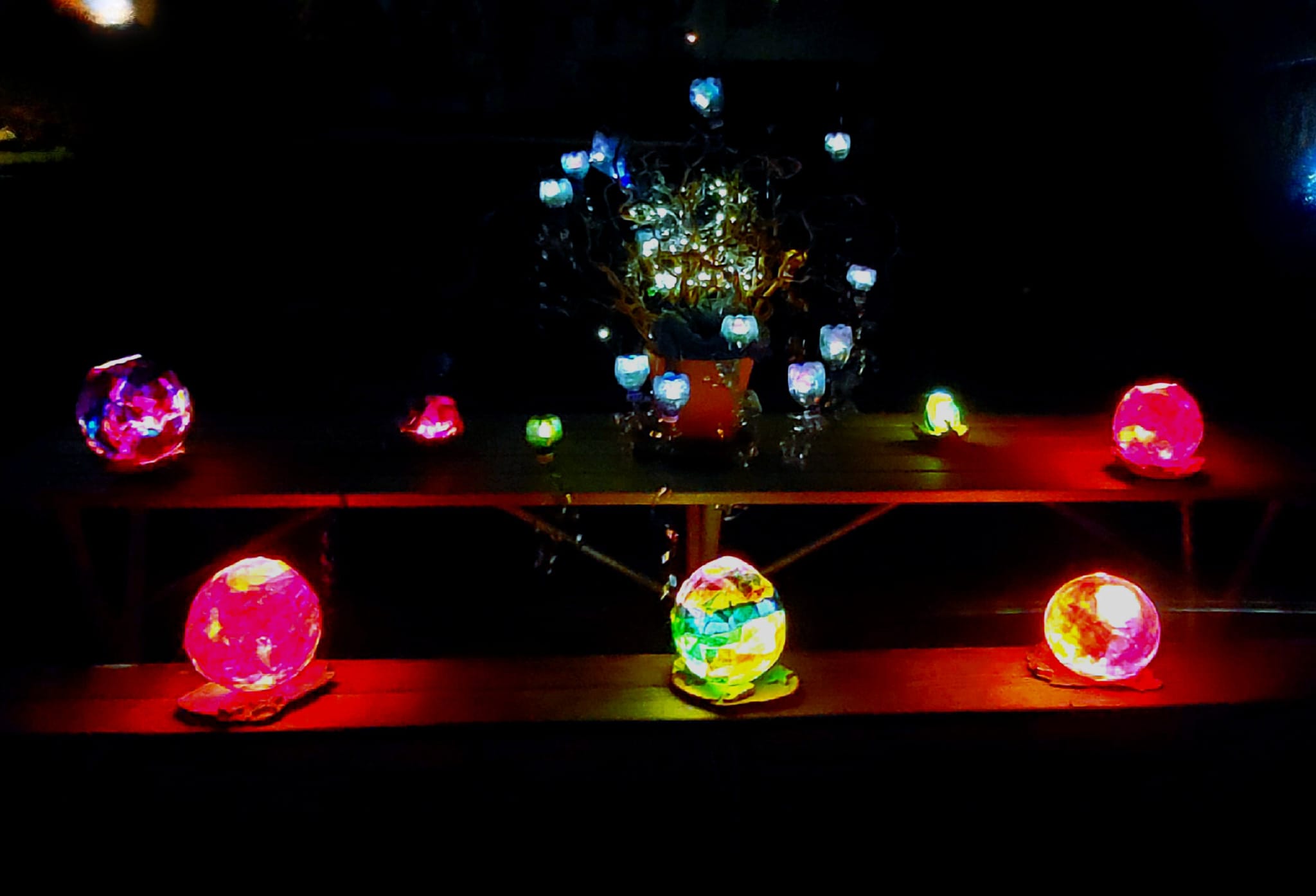 Danach konnten die vielen Lichtkunstwerke bewundert werden. Für das leibliche Wohl sorgten Kuchen, warmer Punsch und Tee – eine willkommene Stärkung in der kühlen Abendluft.